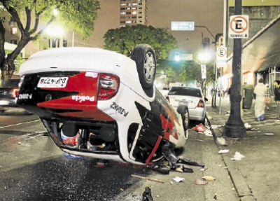 A explosão de um carro utilizado em um protesto na manhã de ontem, em São Paulo, deixou seis pessoas feridas – entre elas uma criança de 11 anos. Os destroços foram atirados a 200 metros de distância e estraçalharam vidraças. Os manifestantes incendiaram o veículo movido a gás natural, que explodiu.